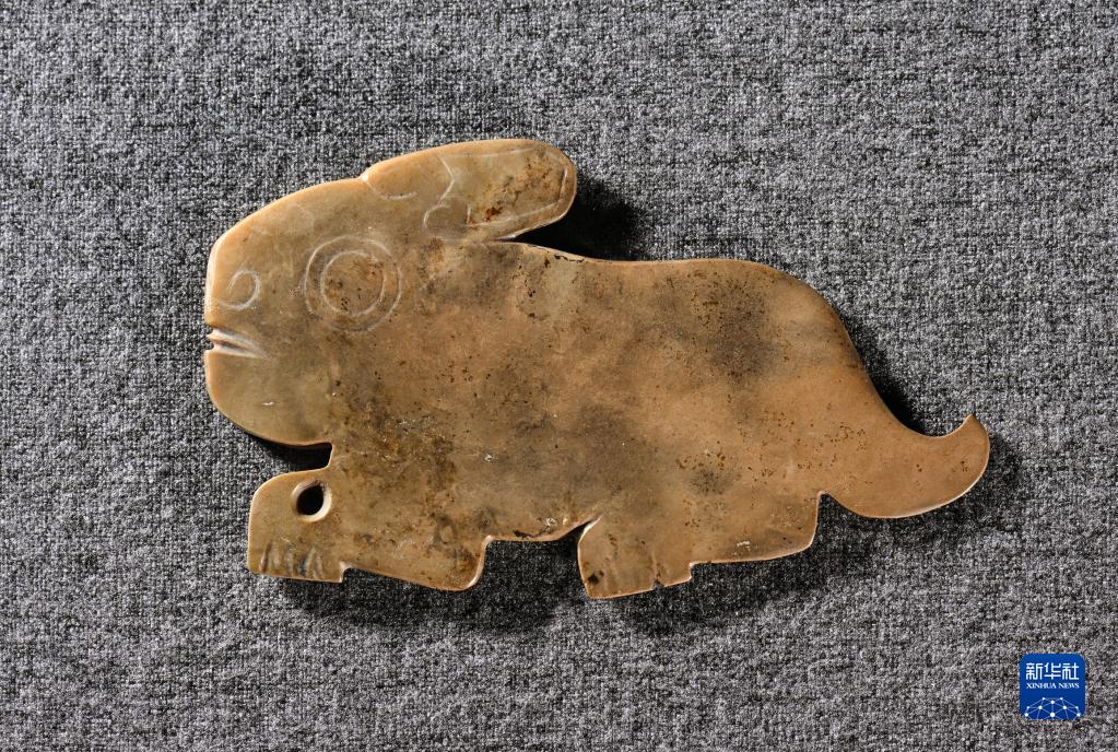 在中国历史研究院考古博物馆拍摄的玉兔(1月20日摄)。玉兔出土于有3000余年历史的河南安阳殷墟妇好墓。玉兔圆眼大睁、张口露舌、长耳后伏、尾尖上翘,呆萌可爱。