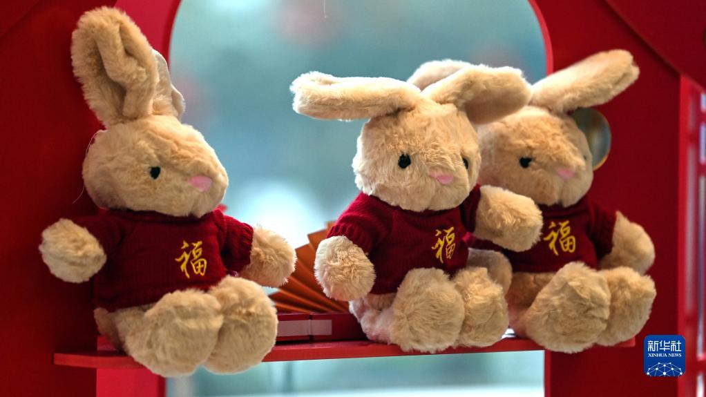 广西钦州市一家商场展示的兔子饰品(1月23日摄)。