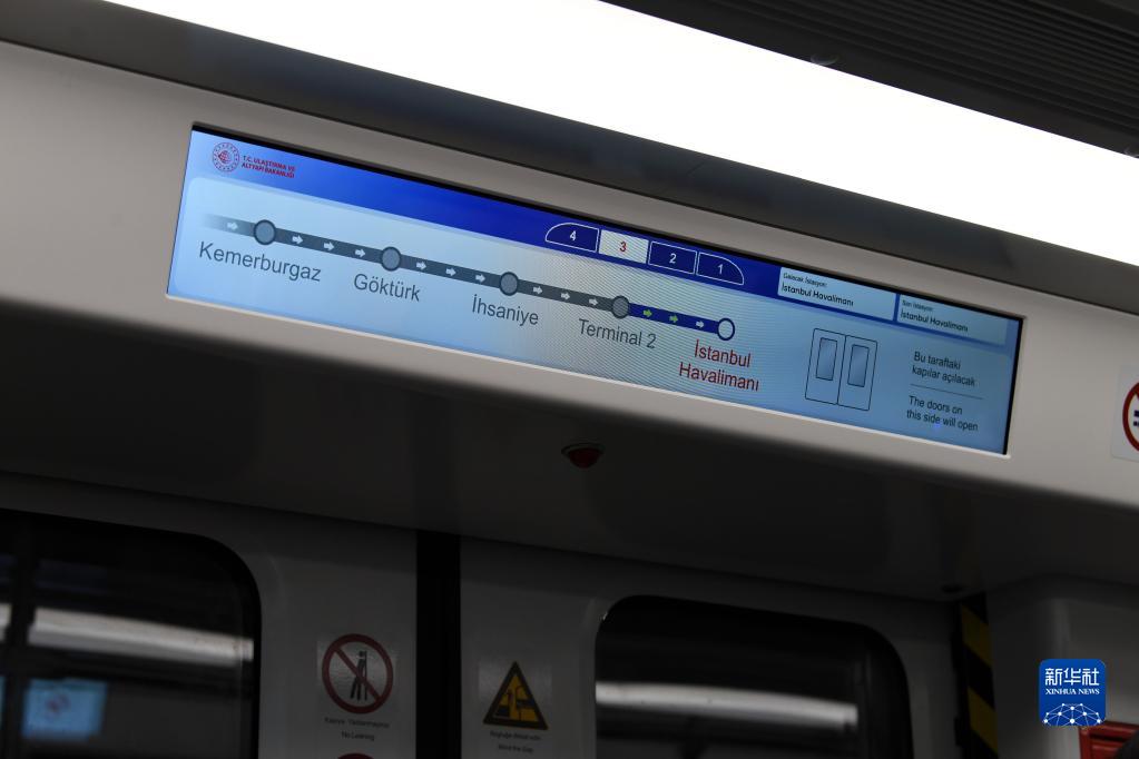 当日,连接土耳其伊斯坦布尔新机场和市中心的新机场线地铁正式开通,中国制造的地铁列车载客运营。该地铁线全长34公里,将市中心到新机场的交通时间压缩至半小时以内,大大提高了旅客中转出行的便利度。地铁列车由中车株洲电力机车有限公司研制,设计速度为120km/h,为全自动无人驾驶地铁列车。