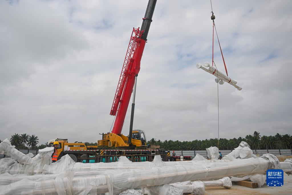 1月23日,工人在位于海南省文昌市的海南商业航天发射场1号工位转运设备构件。
