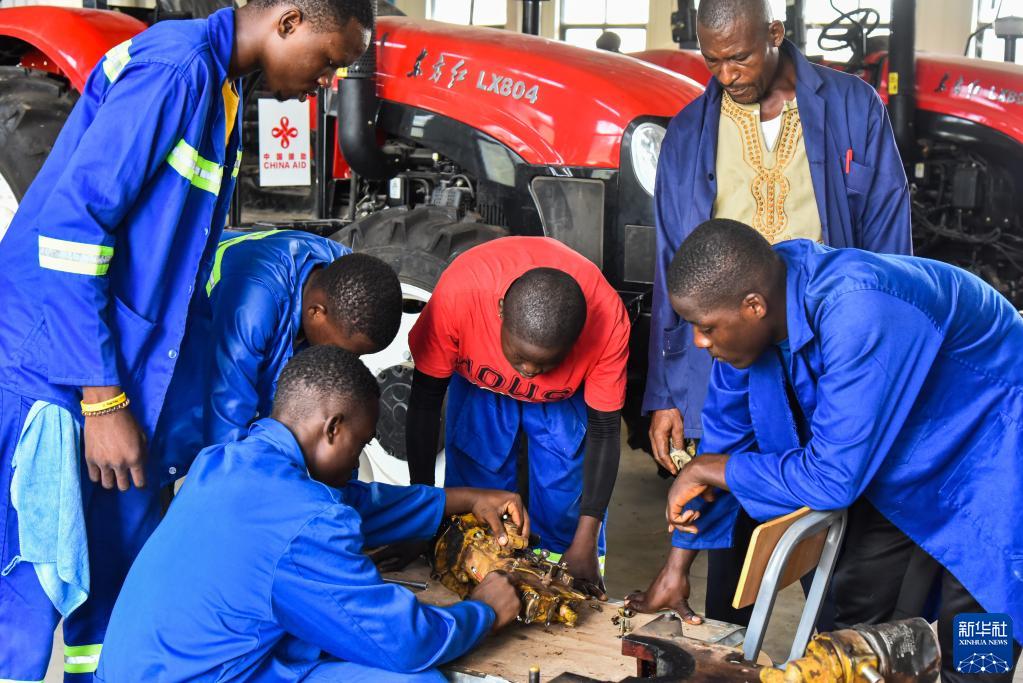 1月12日,在喀麦隆亚巴西,学生在农业职业技术中学上拖拉机实践课。