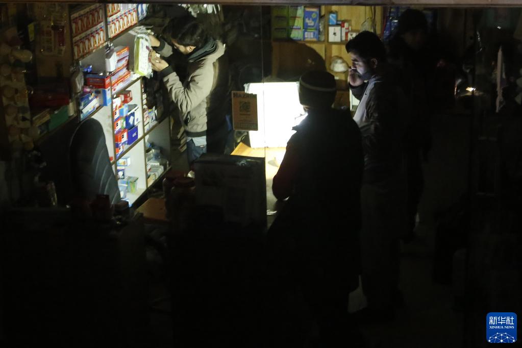 1月23日,在巴基斯坦伊斯兰堡,一间商店在大规模停电期间营业。