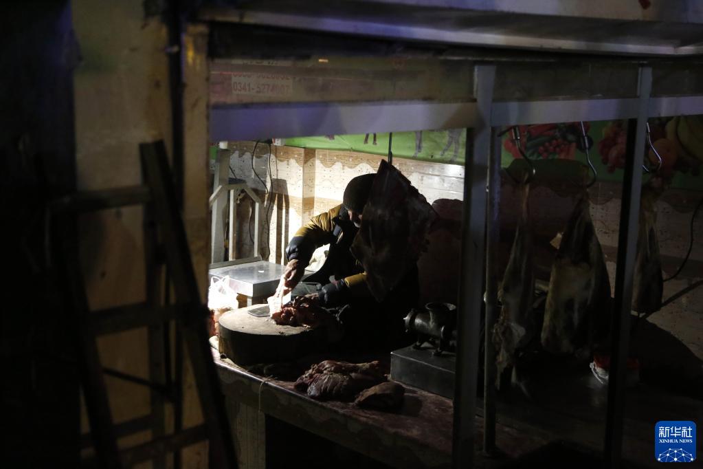 1月23日,在巴基斯坦伊斯兰堡,一家肉铺在大规模停电期间营业。