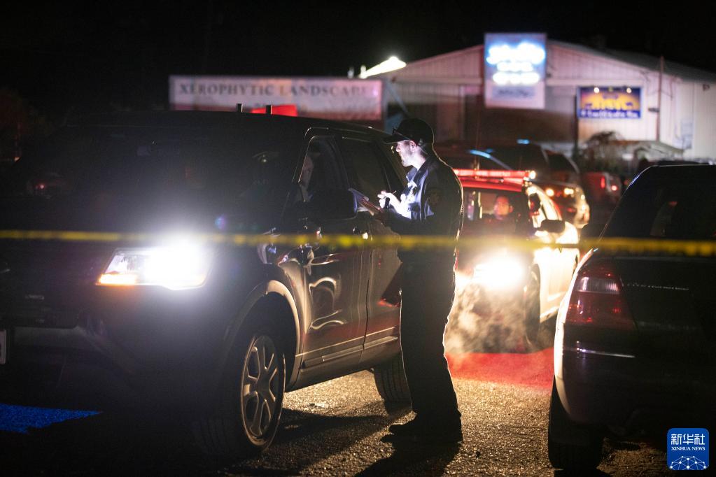 1月23日,执法人员在美国加利福尼亚州旧金山湾区半月湾市枪击事件现场调查。