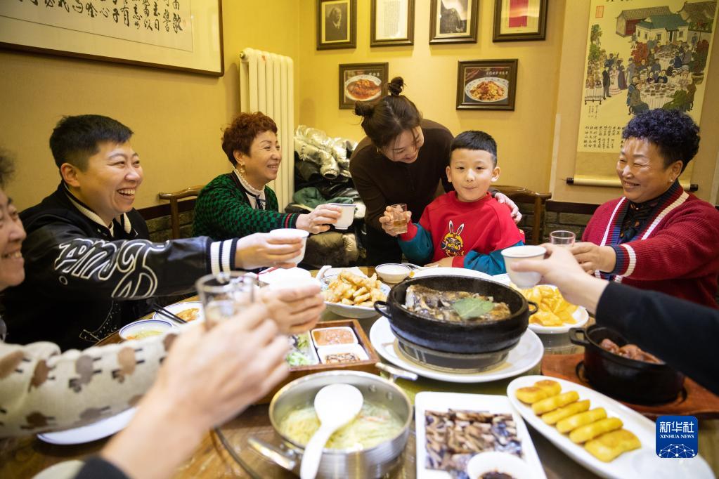 1月24日,在黑龙江哈尔滨市道里区老厨家中央大街店,人们聚餐庆祝佳节。