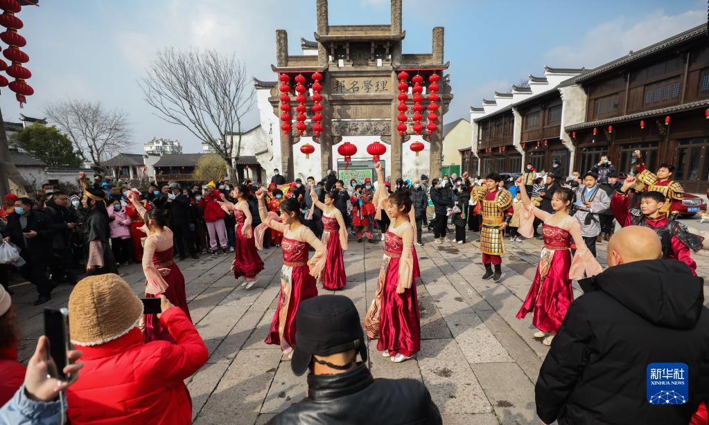 当日,浙江省杭州建德市梅城镇严州古城开启“宋福杭州年”新春系列文旅活动,包括古城开城仪式、“福禄寿三星”送礼、民俗演艺等丰富多彩的活动,展示独具魅力的严州文化,让游客感受古城宋韵。