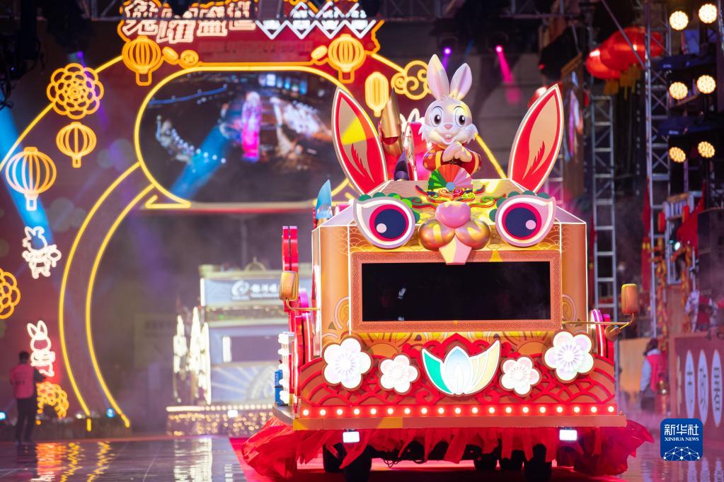 这是1月24日在“兔跃盛世·欢乐春节”2023年农历新年花车汇演上拍摄的花车。