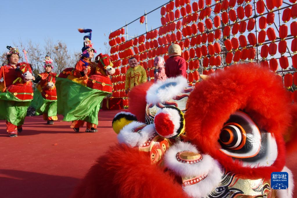 1月25日,演员在山东青岛西海岸新区藏马山民俗大庙会上表演。