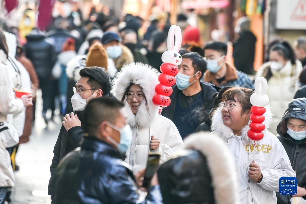 1月25日,人们在内蒙古呼和浩特市玉泉区通顺大巷美食街逛街。