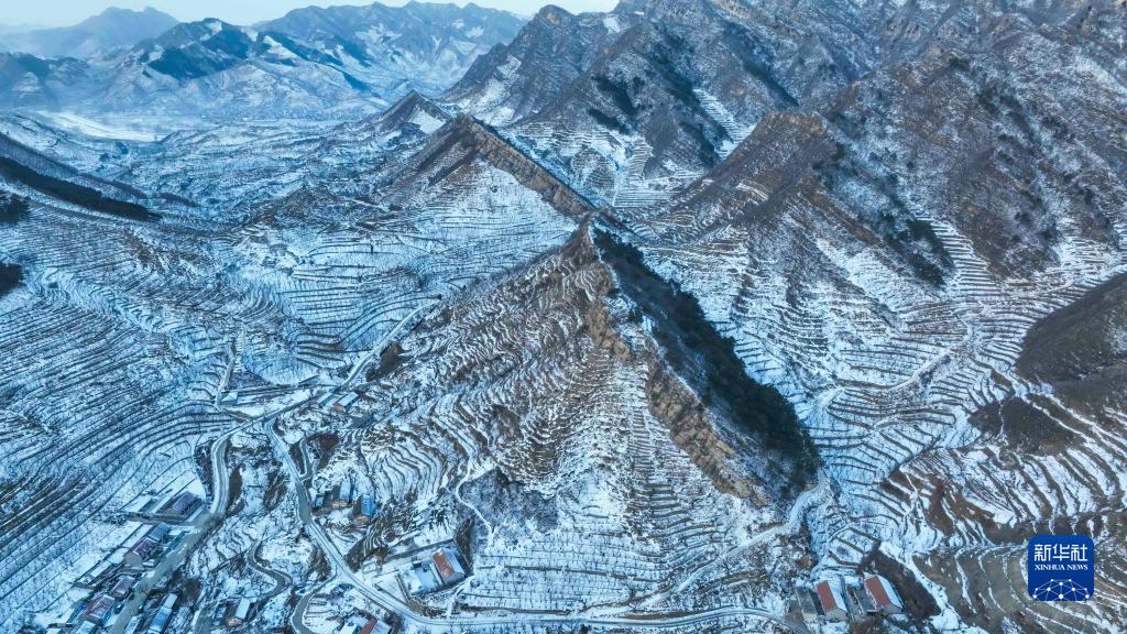 这是1月26日拍摄的河北省迁西县汉儿庄镇的村庄和梯田雪景(无人机照片)。