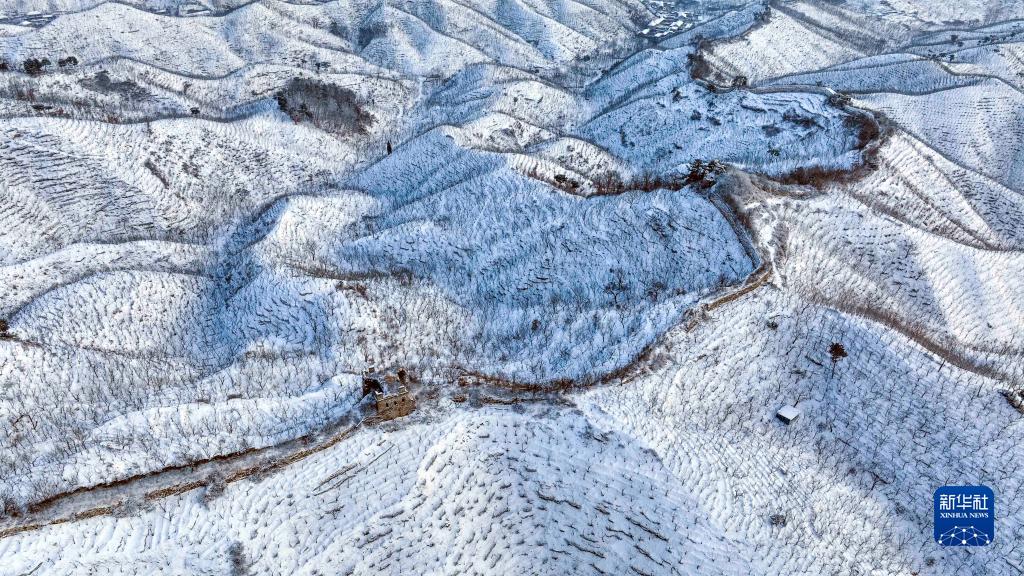 这是1月23日拍摄的河北省遵化市长城雪景(无人机照片)。