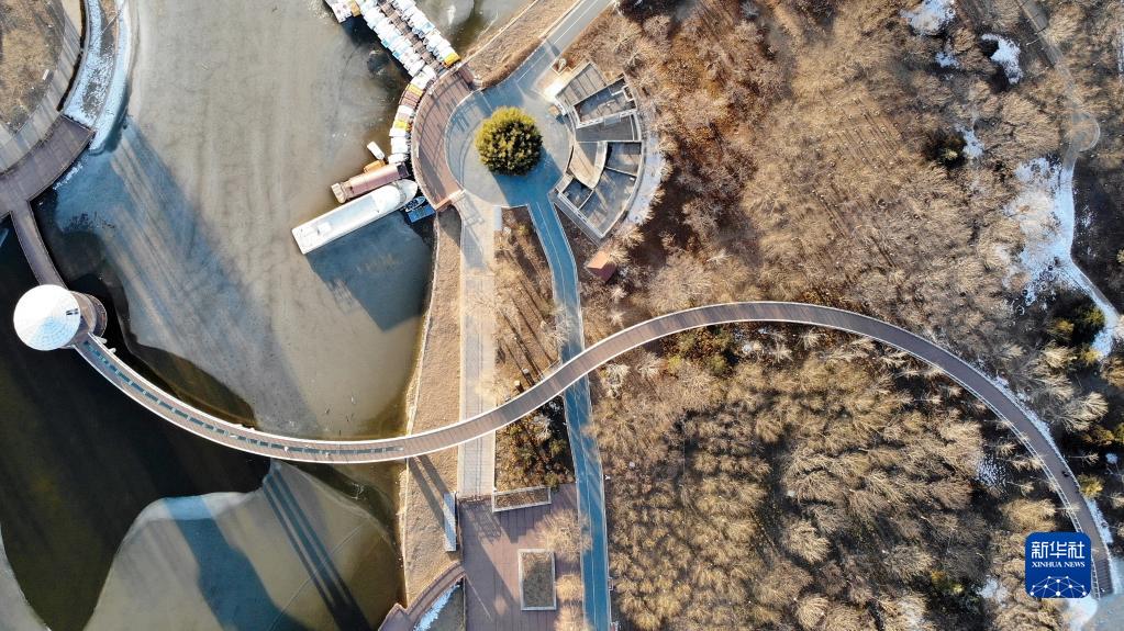 这是1月24日拍摄的石家庄市泊水公园一景(无人机照片)。