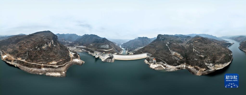 1月25日,贵州省毕节市夹岩水利枢纽工程库区风光如画(无人机全景照片)。