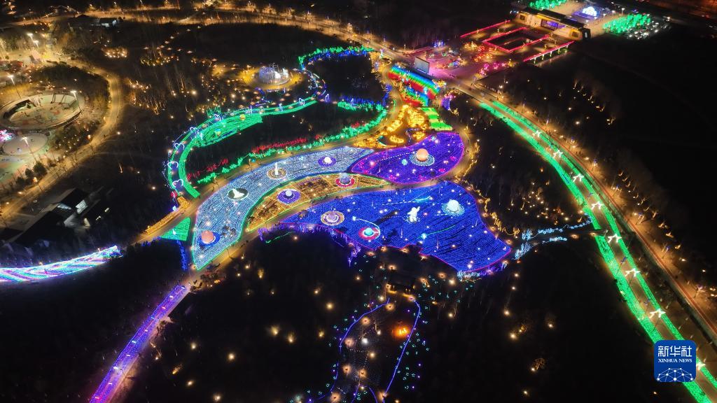 这是1月25日拍摄的河北省邢台市园博园灯光秀(无人机照片)。