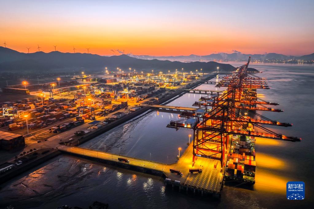 这是1月26日拍摄的宁波舟山港金塘港区大浦口集装箱码头(无人机照片)。