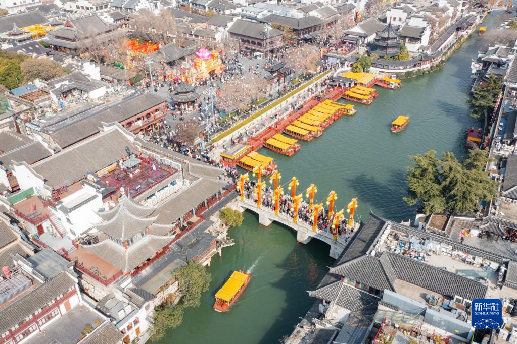 1月26日,游人在南京夫子庙景区游览(无人机照片)。
