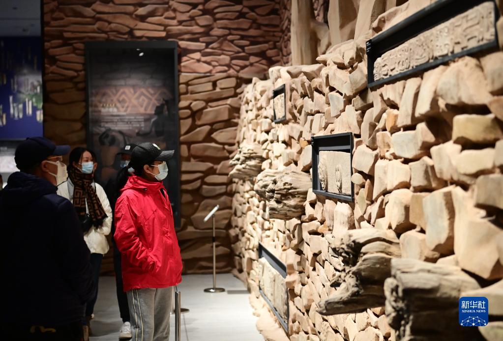 1月25日,在陕西考古博物馆,游客参观石峁遗址展区。