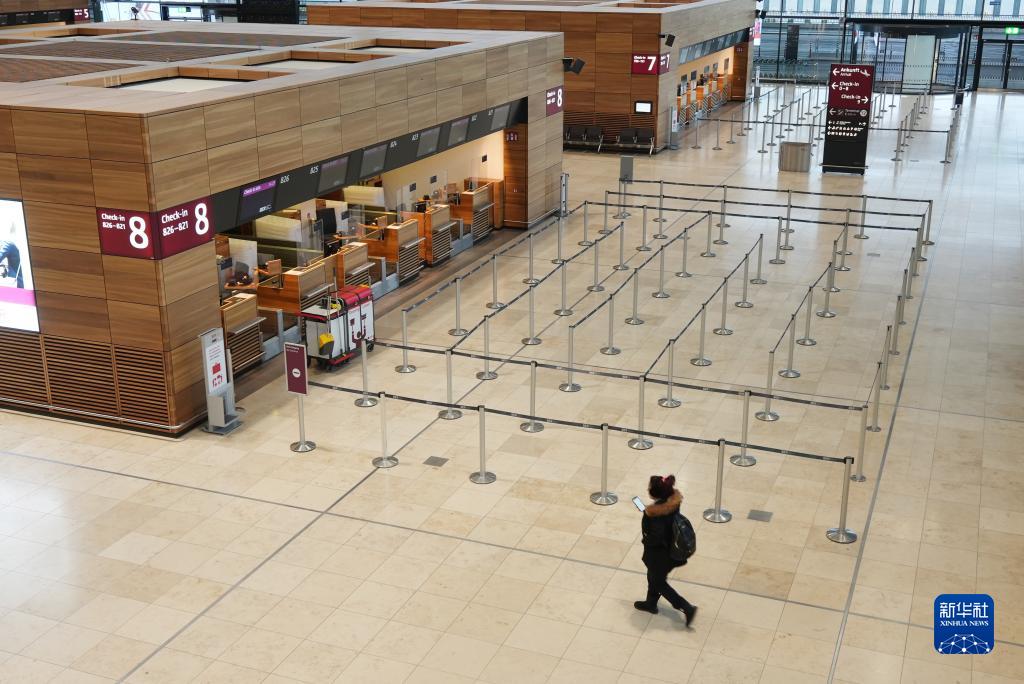1月25日,一名女子走在德国柏林-勃兰登堡机场航站楼内。