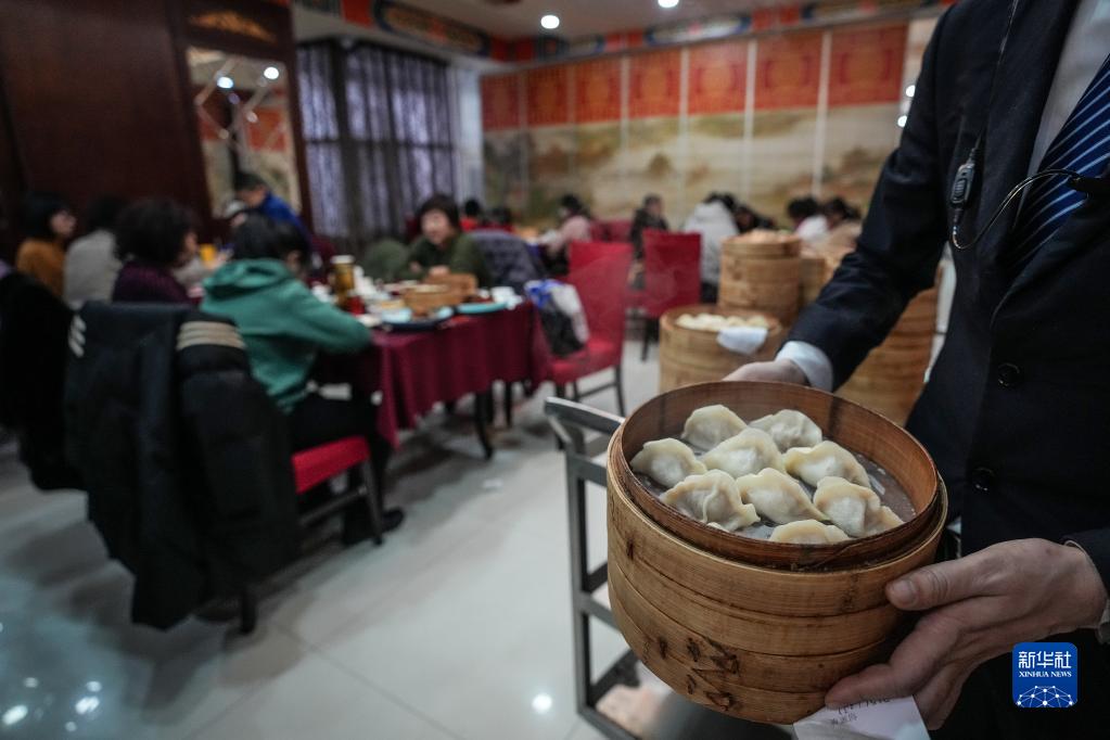 当日是农历正月初五,俗称 “破五”,民间有吃饺子的习俗。沈阳的饺子店迎来品尝美味饺子的食客,热气腾腾的饺子也寄托了人们对美好生活的期盼。
