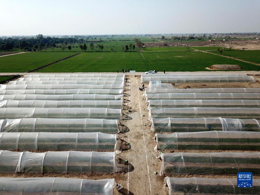 这是1月16日在巴基斯坦旁遮普省木尔坦拍摄的中巴辣椒订单种植项目辣椒育苗大棚(无人机照片)。