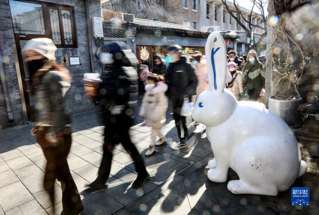 1月27日,游客在北京南锣鼓巷游览。