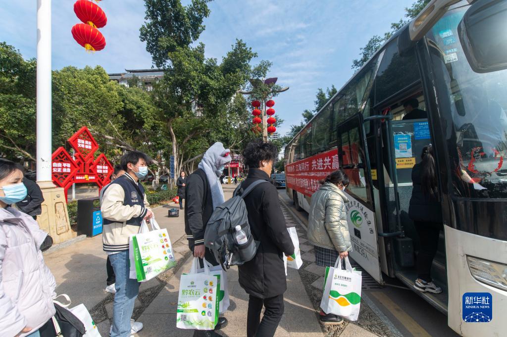1月27日,黔东南苗族侗族自治州从江县返岗群众乘坐政府包车前往广东省佛山市务工。