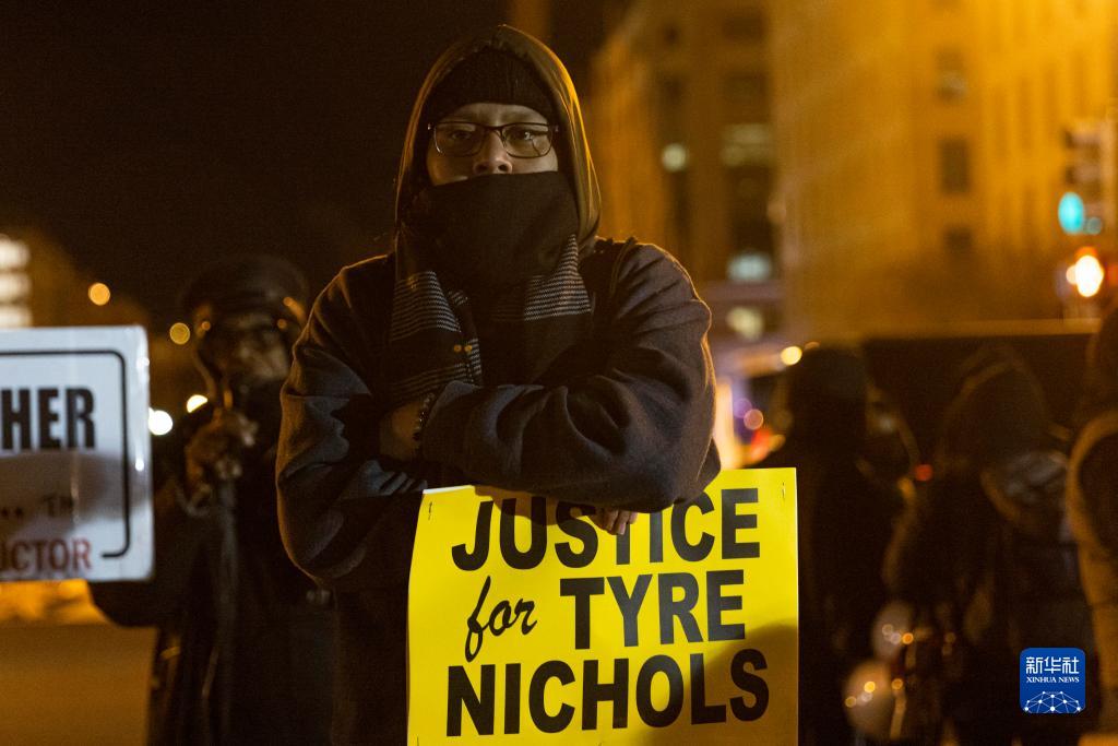 1月27日,在美国首都华盛顿,人们在白宫前抗议非洲裔男子泰尔·尼科尔斯遭警察殴打身亡。