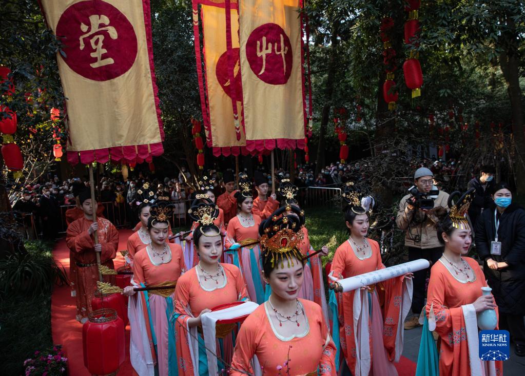 1月28日,在四川成都举行的“人日”游草堂、祭拜诗圣杜甫活动现场,主祭队伍入场。