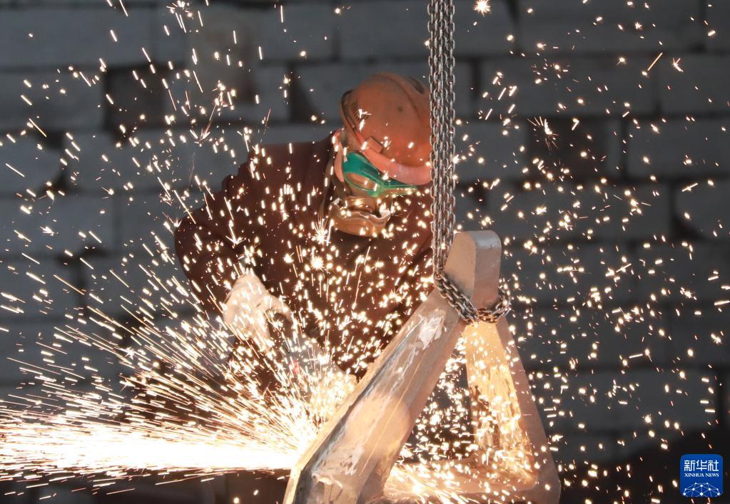 1月28日,工人在浙江省杭州市临安区天目山镇一家生产企业进行打磨作业。