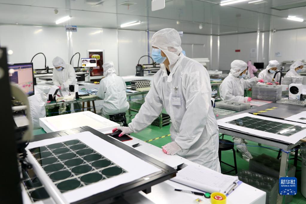 1月28日,在江西省宜春市上高县一显示技术有限公司车间,工人在岗位上忙碌。