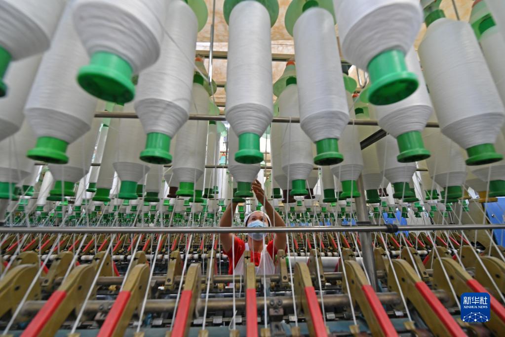 1月28日,在福建省泉州市泉港区山腰街道一轻纺工厂,工人在生产线上忙碌。