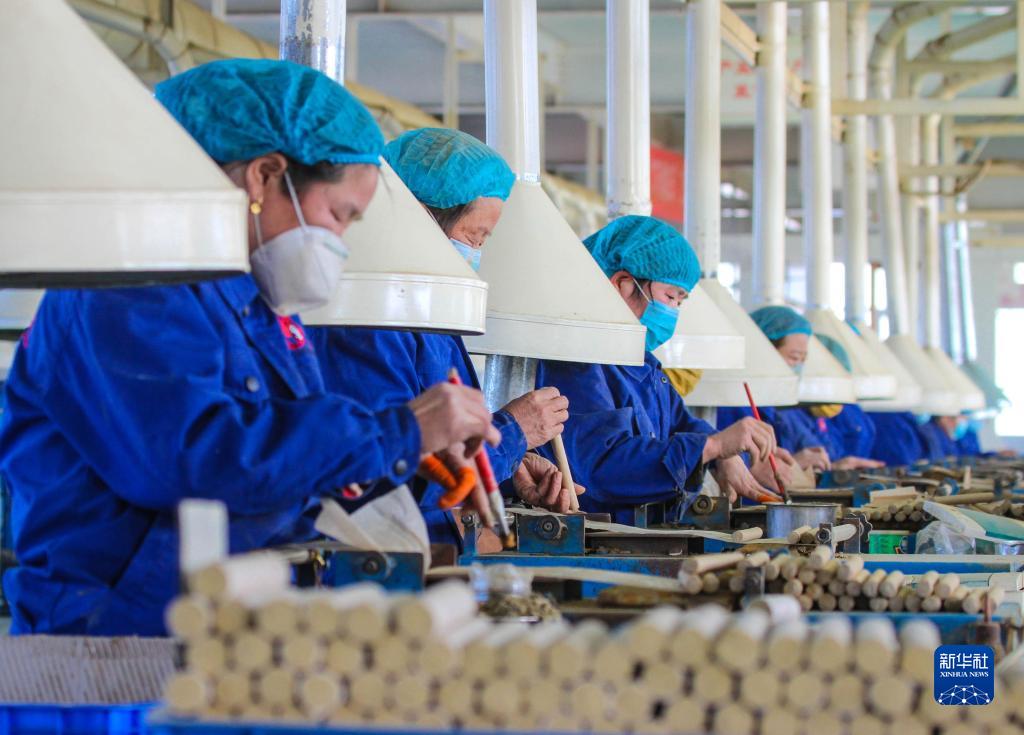 1月28日,在河南省南阳市一艾草制品有限公司生产车间,工人加紧生产。