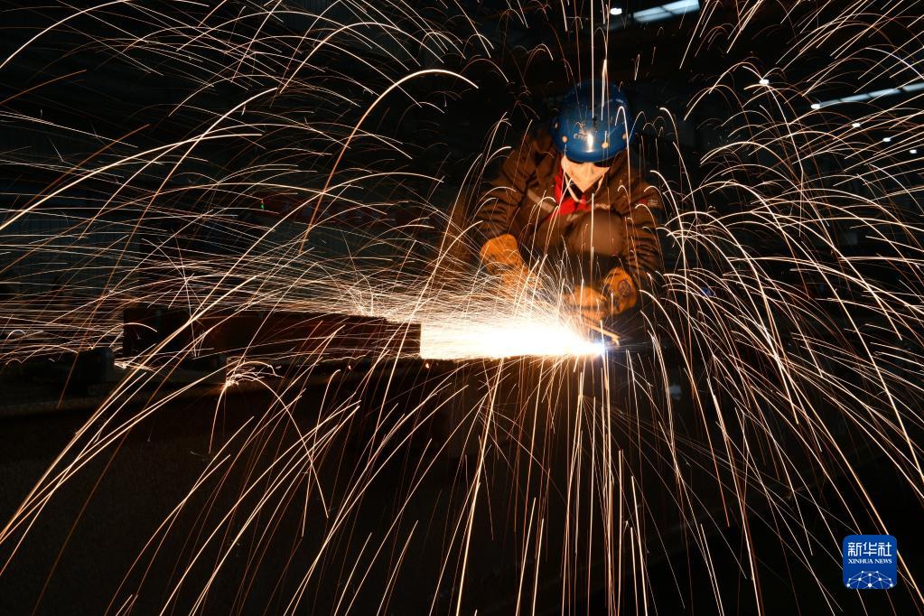 1月28日,在位于河北省石家庄市栾城区的中车齐车集团石家庄公司,车间员工进行焊接操作。