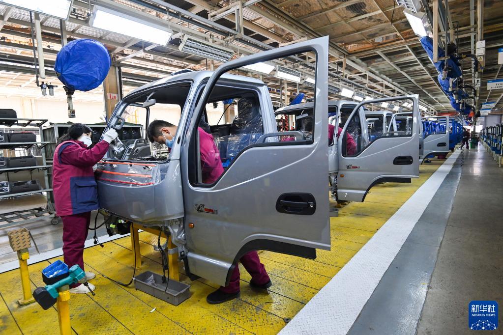 1月28日,工人在山东省青州市一家汽车生产企业车间内组装作业。