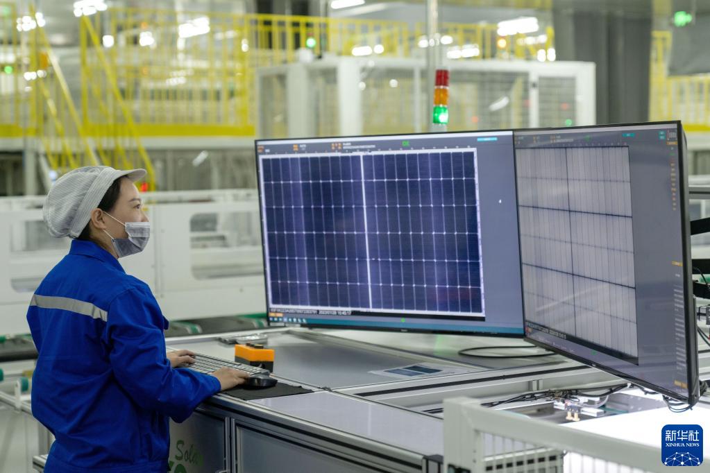 1月28日,工人在安徽省合肥市肥东县合肥循环经济示范园内某太阳能光伏组件生产公司的车间作业。
