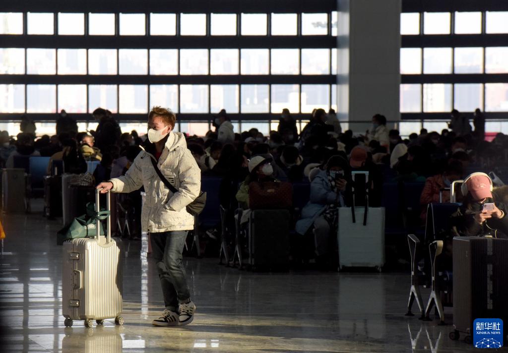 1月27日,旅客在安徽阜阳西站候车室内候车。