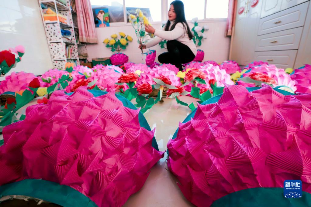 近日,河北省迁西县洒河桥镇的民间艺人们忙着赶制传统手工跑花灯,为元宵节演出做准备。迁西县传统跑花灯历史悠久,每逢元宵节期间当地民间艺人就会为村民演出,深受人们的欢迎。