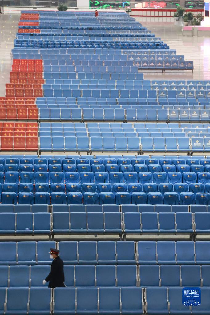 1月29日,一名铁路职工走过空无一人的贵阳北站候车大厅。
