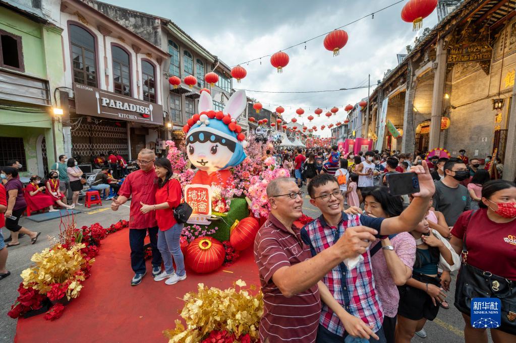 1月28日,人们在马来西亚槟城州首府乔治市举行的槟城庙会上游玩。