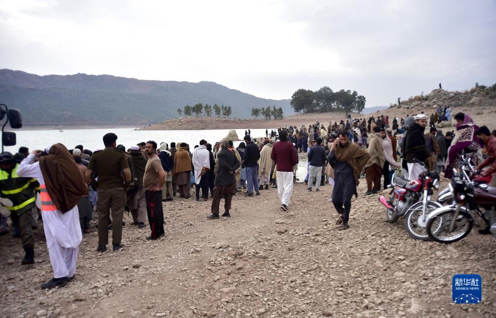 1月29日,人们聚集在巴基斯坦开伯尔-普什图省科哈特地区的船只倾覆事故现场。