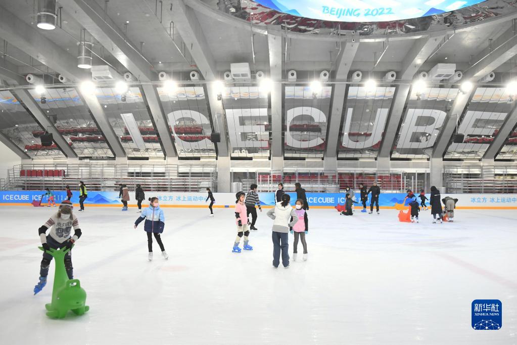 人们在“冰立方”冰上运动中心滑冰(1月23日摄)。