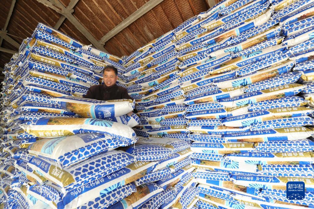 1月29日,在浙江省湖州市德清县阜溪街道供销农资储备中心,工人在码放春耕备耕农资。