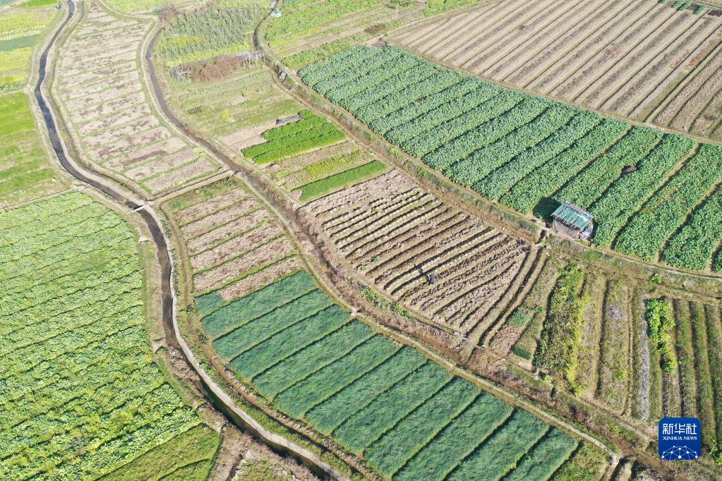 1月30日,在湖南省永州市道县清塘镇陈熊村,村民在翻地(无人机照片)。
