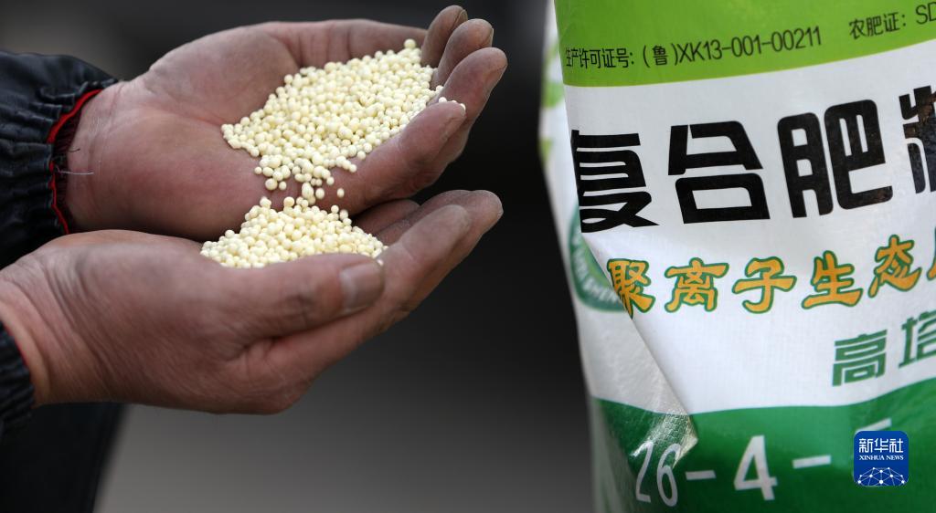 1月30日,山东省临沂市郯城县郯城街道东风村种粮大户范加江在查看购买的肥料。