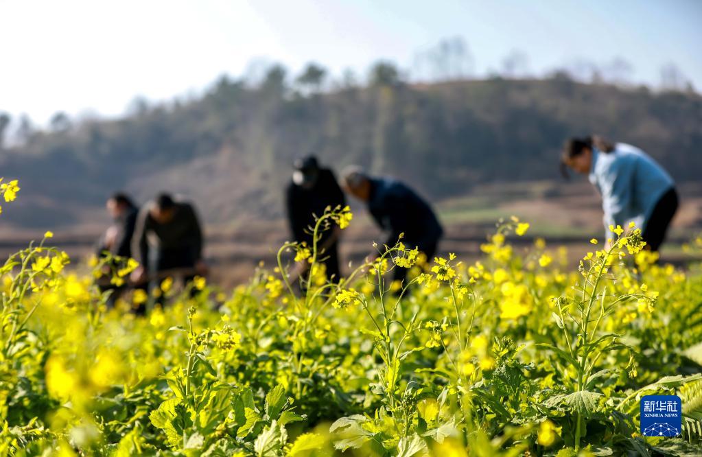 1月30日,村民在贵州省黔西市莲城街道老鸹河社区地里劳作。