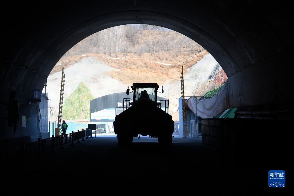 1月30日,在首都地区环线高速公路承德至平谷段杨家窝铺特长隧道施工现场,工人驾驶装载机进场施工。