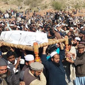 1月30日,在巴基斯坦西北部开伯尔-普什图省,人们参加遇难者的葬礼。