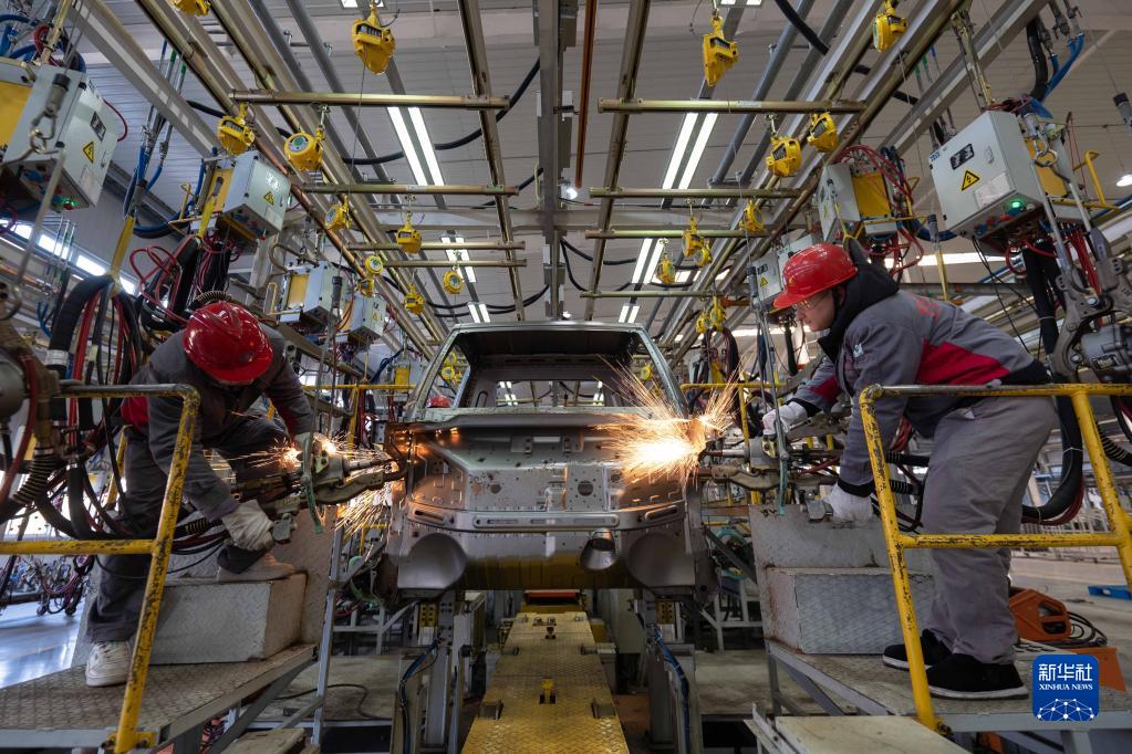 1月30日,工人在贵州省铜仁市万山区一家汽车制造企业的焊装车间作业。