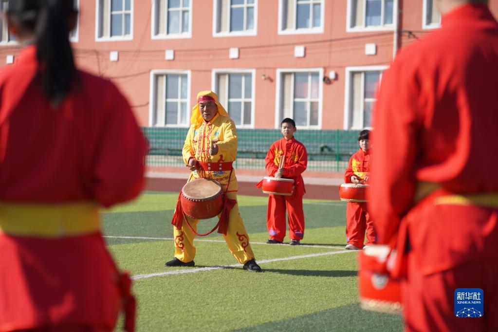 寒假期间,河北省邢台市内丘县官庄中心小学开设文化课堂,邀请当地排鼓艺人向学生教授排鼓知识,让学生感受家乡文化的魅力,丰富假期生活。