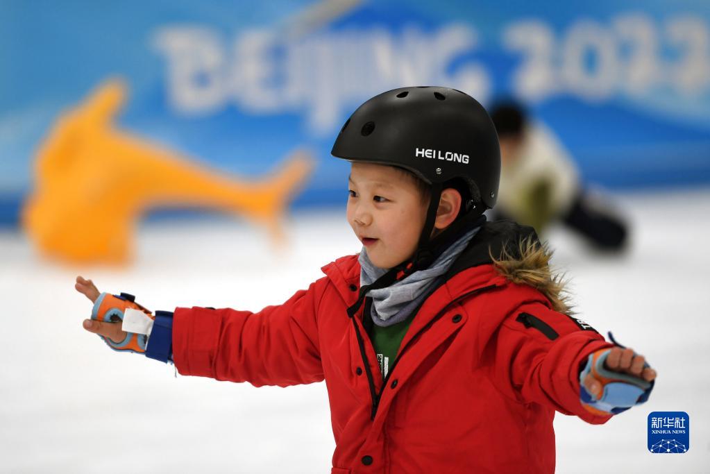 2023年1月22日,小朋友在国家速滑馆滑冰。